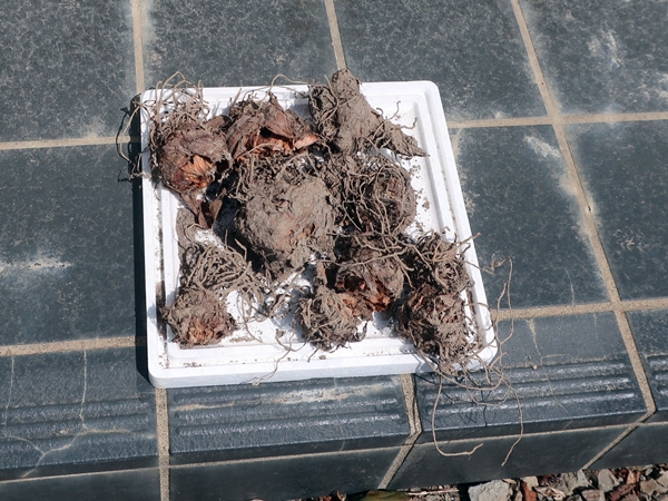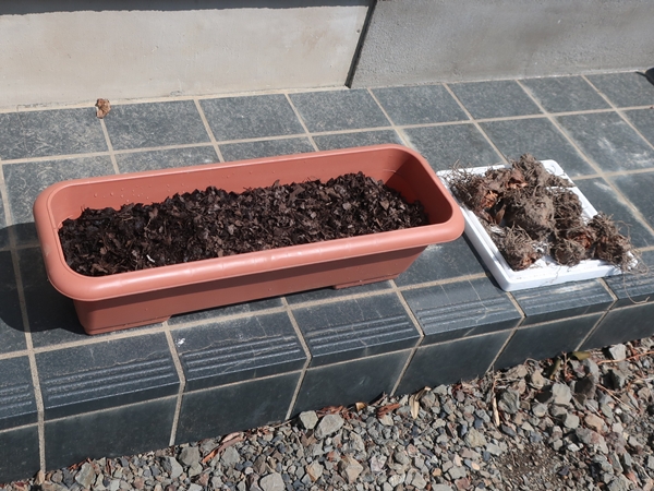 春が来たので植え付け方法を調べたところ、そもそも保管方法が間違っていました。寒気にさらさないように、土に埋めるあるいは新聞紙にくるむという方法が推奨されています。しかし、思い切り軒下で野ざらしにしていました。
