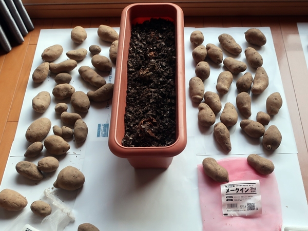 先に芽出しのために広げていたジャガイモと並べました。