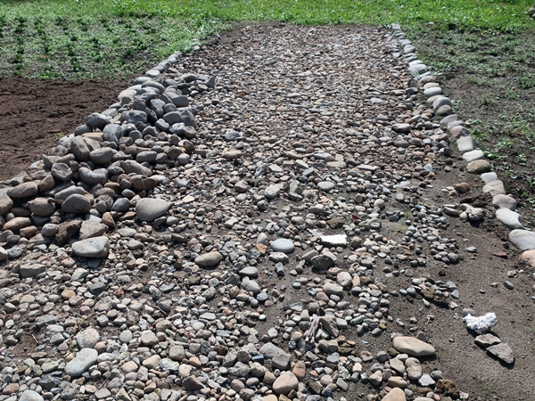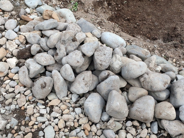 大きな石は縁石に、小さな石は道の砂利敷きに活用しています。