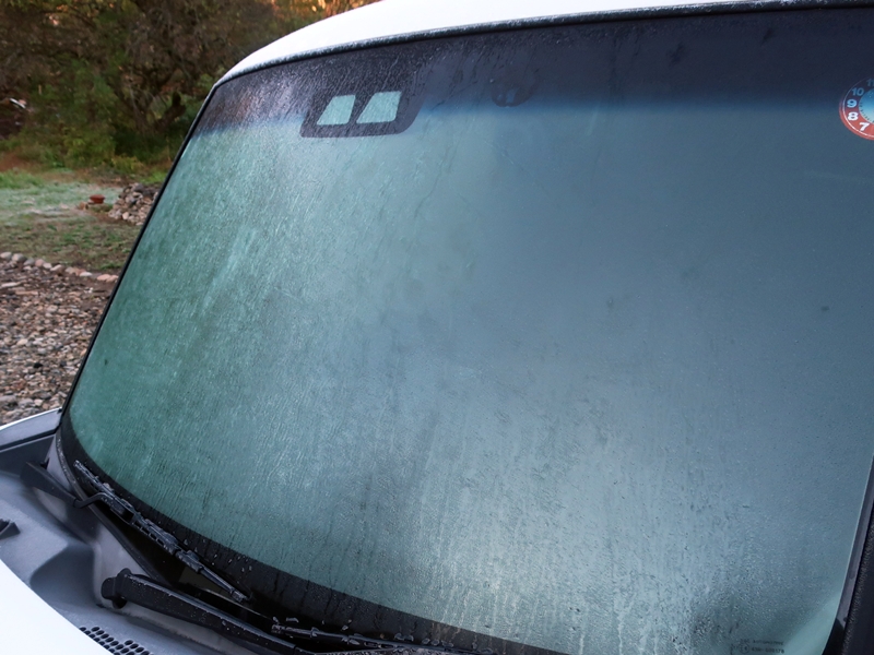 車のフロントガラスには霜が凍り付いています。