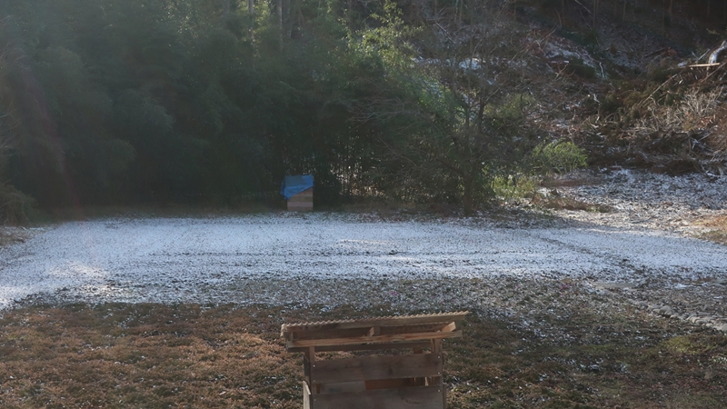 昨日から小雪がちらつき、庭がうっすらと白くなっています。