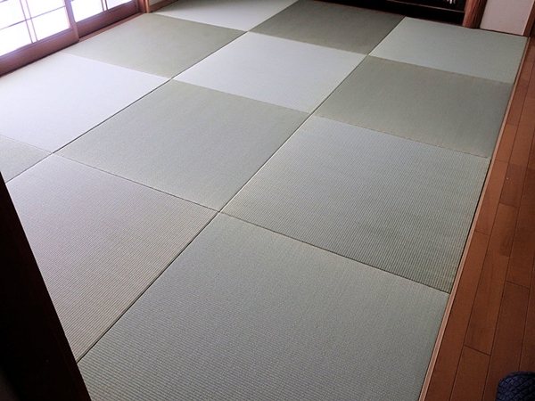 まずは見積もりに来ていただき相談をした結果、正方形のへり無し畳を新調することにしました。
