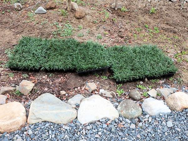 ほかの植物も検討したのですが、グランドカバーとして総合的に極めて優秀なためにどうしてもタマリュウばかりになってしまいます。