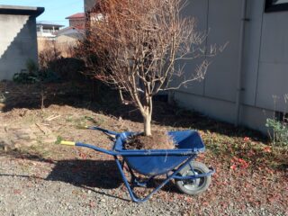 その前に本日手掛けたのがこちら、昨年12月に植え替えしたドウダンツツジの根元へのグランドカバーです。