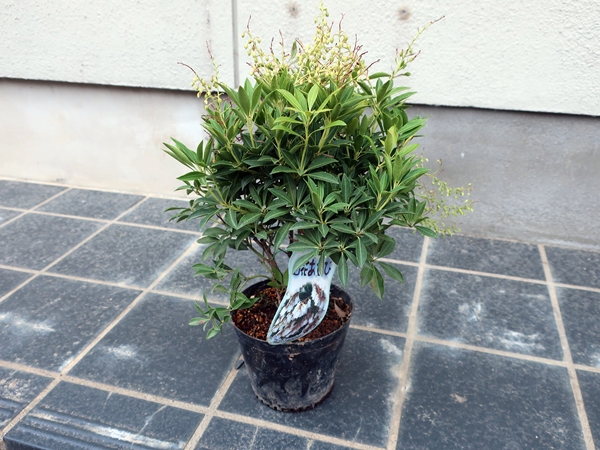 ツツジ科の植物で、春に壺状の花を咲かせます。半日陰でも育ち、それほど樹高が高くならない、という理由で選びました。