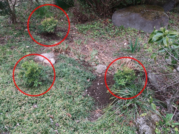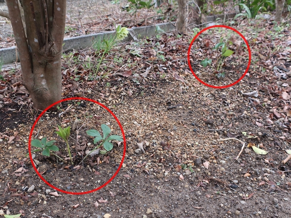 まずは既にあるクリスマスローズの周りに、花をまだつけていない小さな苗を植えました。