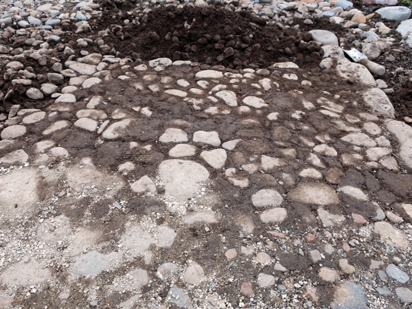ただの道ではありません。凝った石敷きの道にしてしまったために莫大な手間暇を要しました。