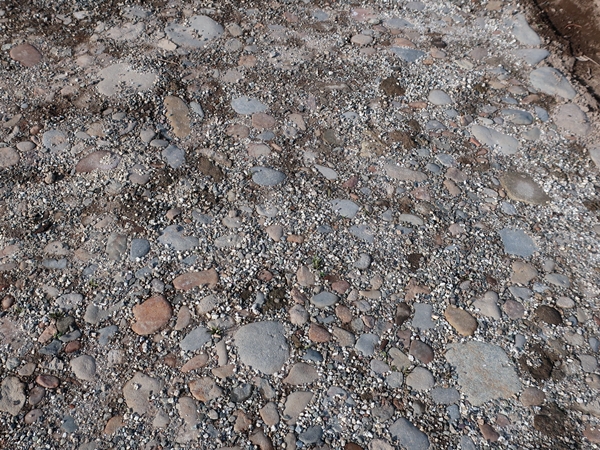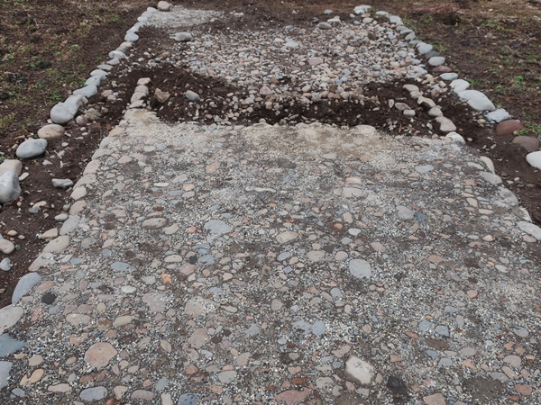 これはこれでぬかるみ防止によいものの、石が動くので不安定なのとデコボコが気になります。