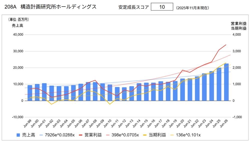 特にここ数年の絶好調な業績を反映し、安定成長スコアは10点と最高評価です。